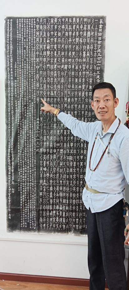 2022年9月24日,在安顺市镇宁布依族苗族自治县史志办与布依学会的热情邀请下,我馆王楠老师代表博物馆应邀参加镇宁自治县乡村振兴帮扶活动--拓印文物古碑。活动中,王楠老师充分展示了他的拓印的技术,着重宣传文物保护相关知识,在现场向人们分享了拓碑心得。